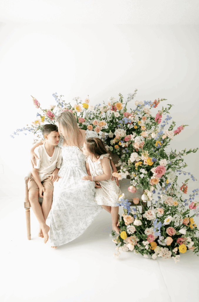 For my Tampa families, the South Tampa studio will host a soft, whimsical floral setup. Think airy tones, gentle movement, and a refined, romantic feel. This environment will be delicate and elevated, offering a completely different aesthetic while still holding space for authentic connection. It is a perfect complement for families seeking a quieter, more ethereal look from their session with a Tampa family photographer.